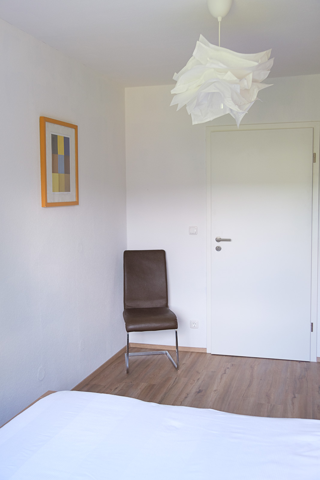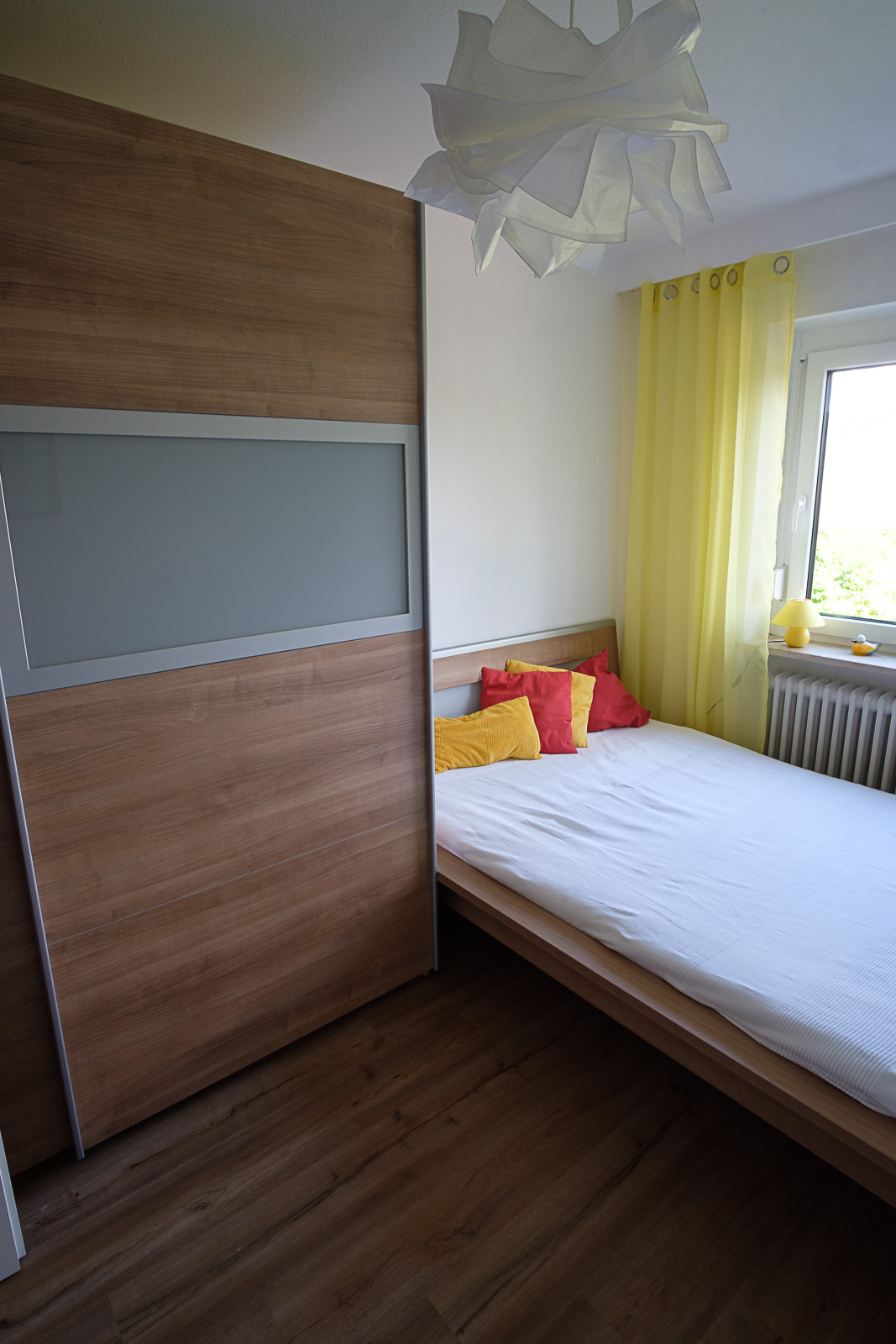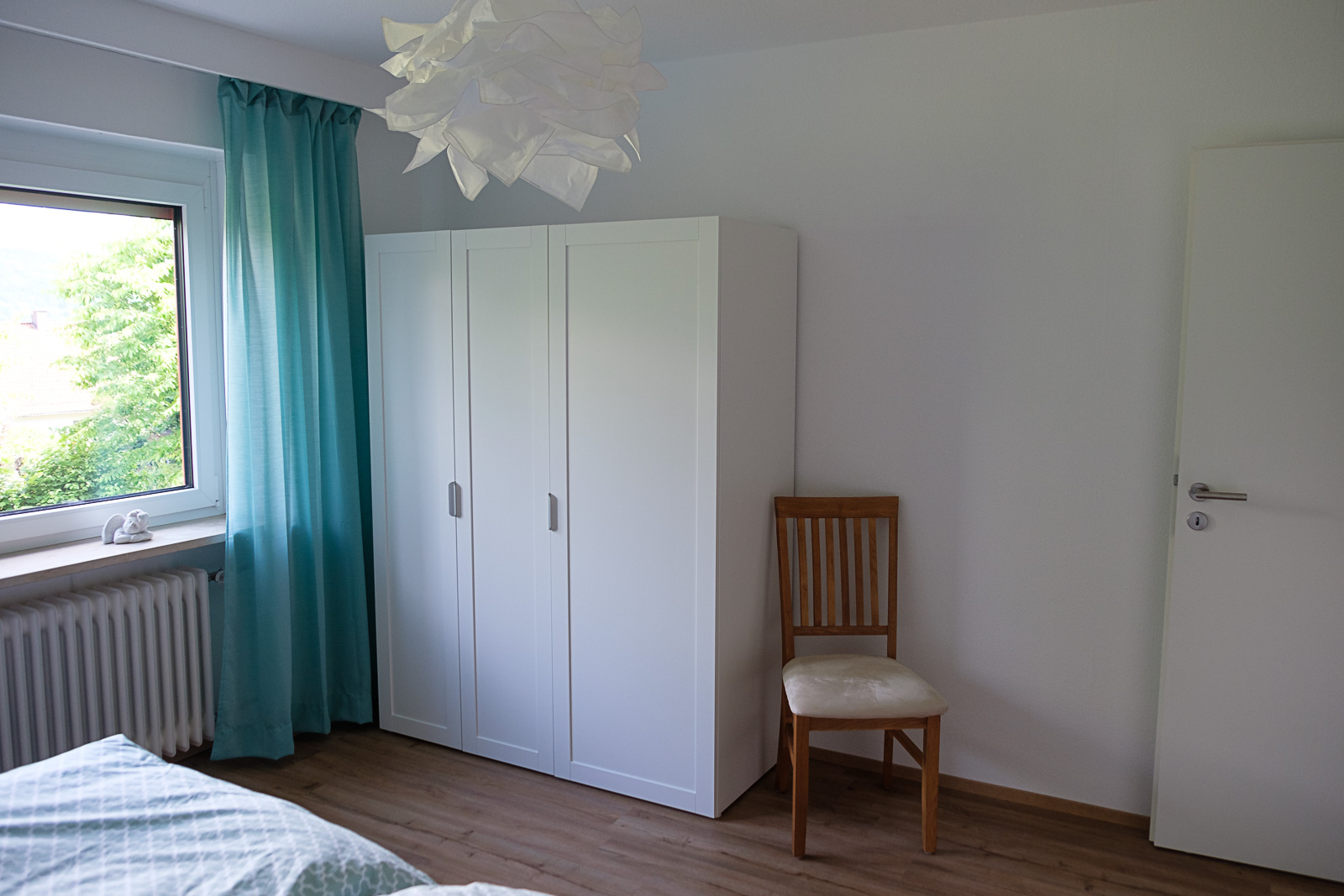 Das zweite Schlafzimmer ist mit einem 1,40m Bett und Kleiderschrank zweckmässig eingerichtet.