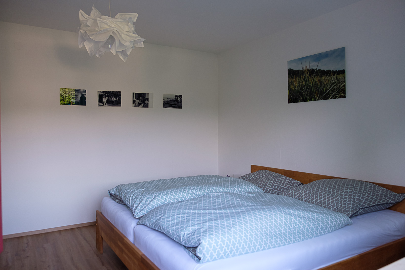 Im grossen Schlafzimmmer befinden sich ein Doppelbett und Kleiderschrank.